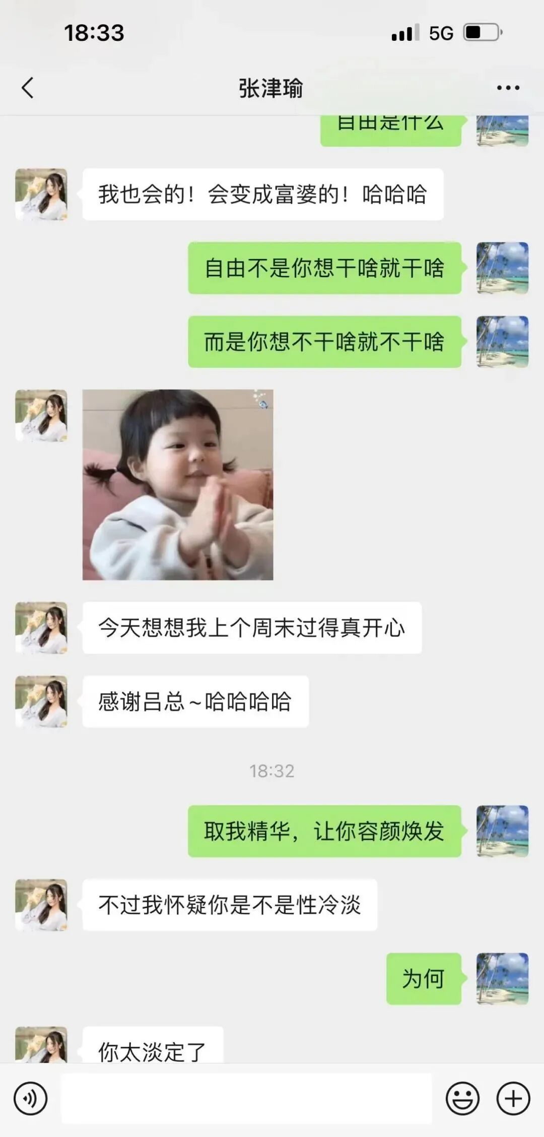 从聊天记录(真实性有待核实)里可以看出,吕总很有钱,张记者几乎倾倒式地帖服向他。