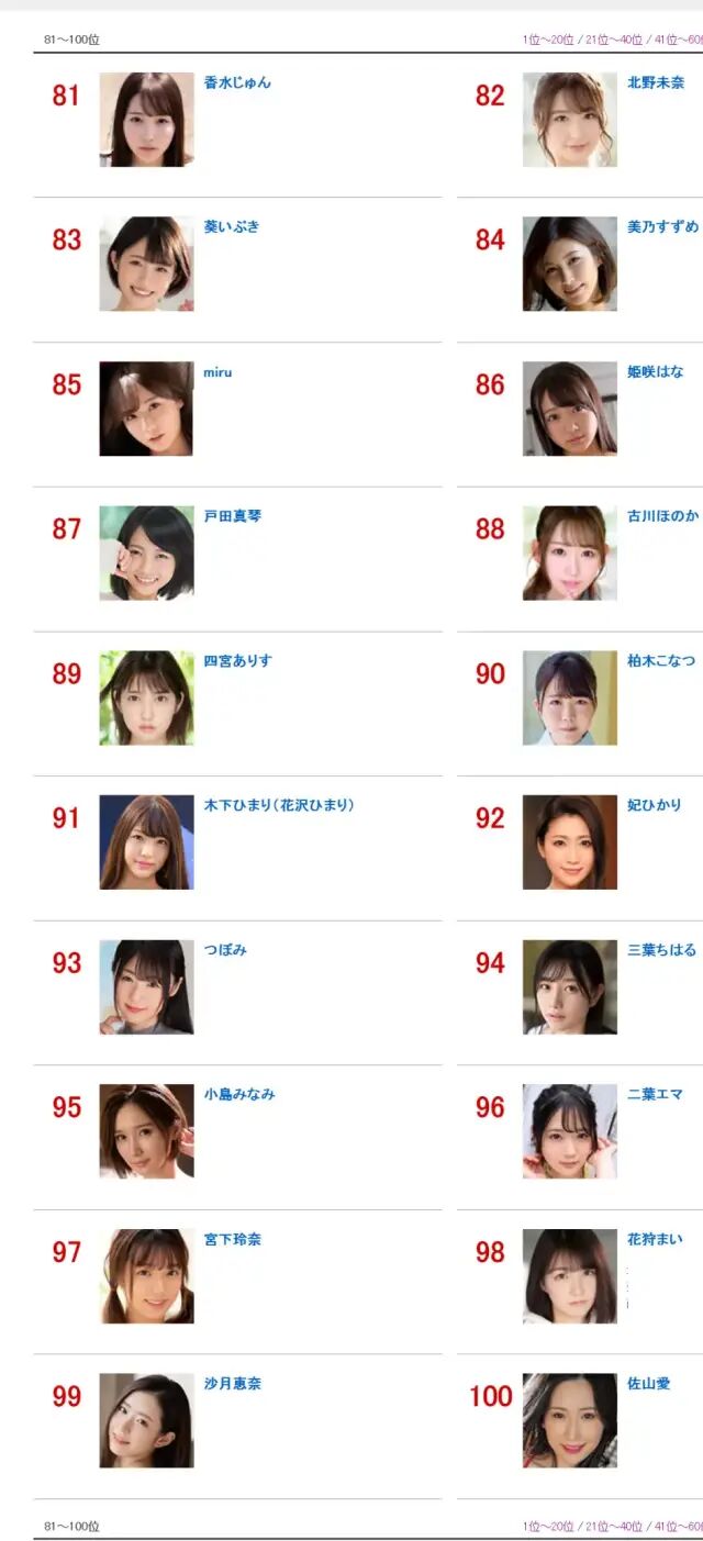 盘点岛国百强女优排名!TOP100