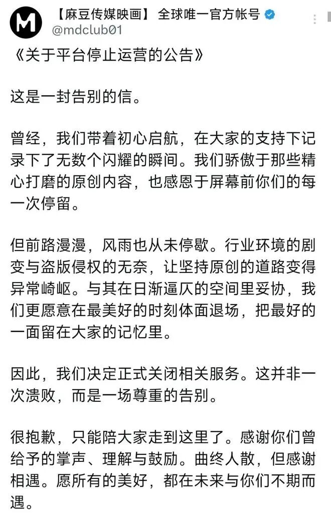 震惊!“麻豆传媒”连夜宣布永久关停,从年赚2200万到一夜倒塌!