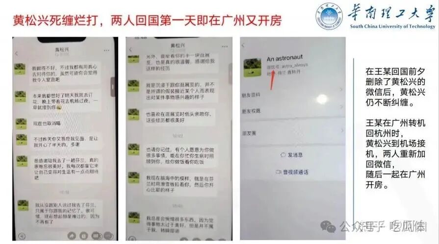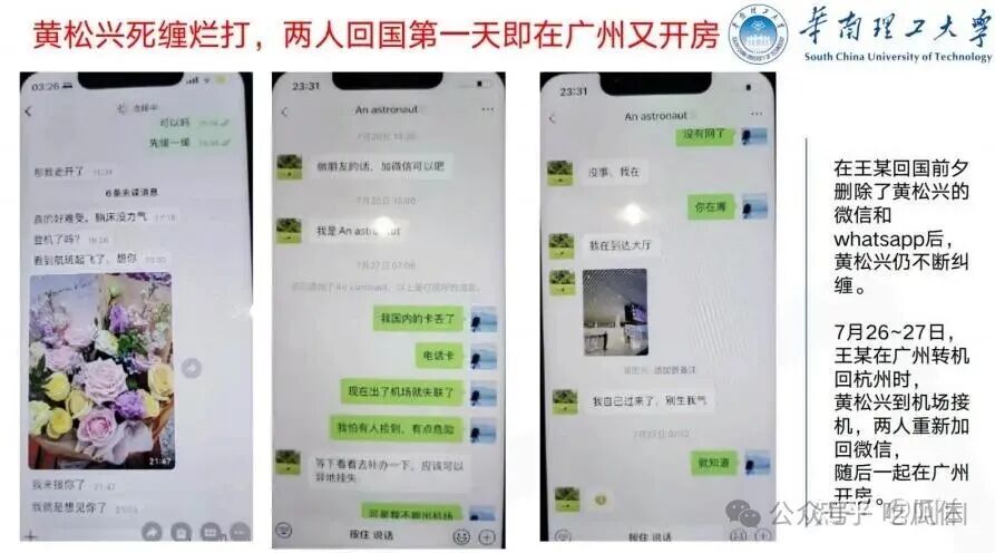王某在广州转机回杭州时,黄某某到机场接机,两人重新加回微信,随后一起在广州开房。