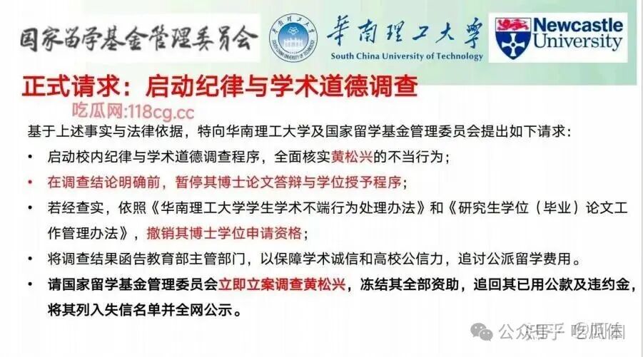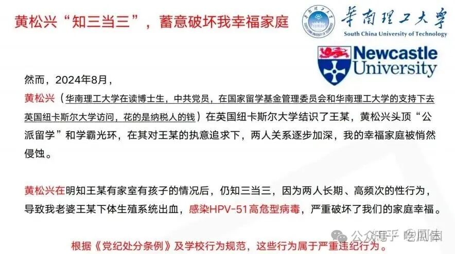 举报人称,本事件涉及学术界、公共健康及社会伦理的严重问题。黄某某作为公派留学生,直接影响了华南理工大学的学术声誉,希望对黄某某进行追责。