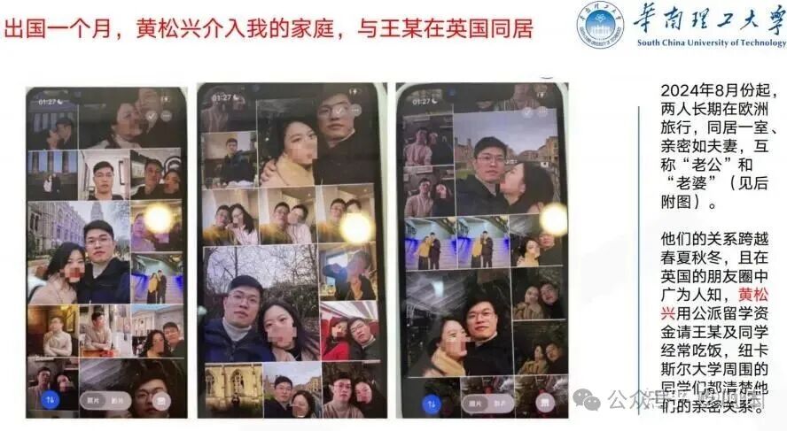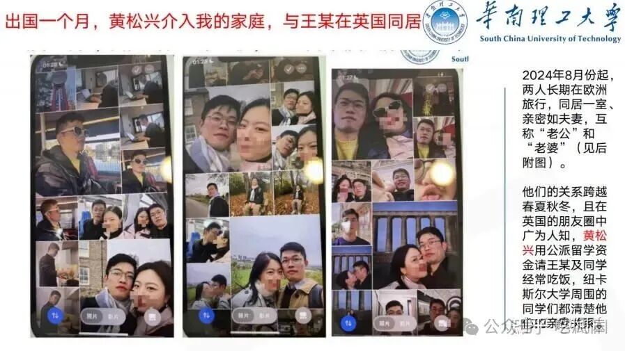举报人称,黄某某在明知王某有丈夫,有孩子的情况下,两人仍在英国、芬兰等地长期同居,黄某某“知三当三”。