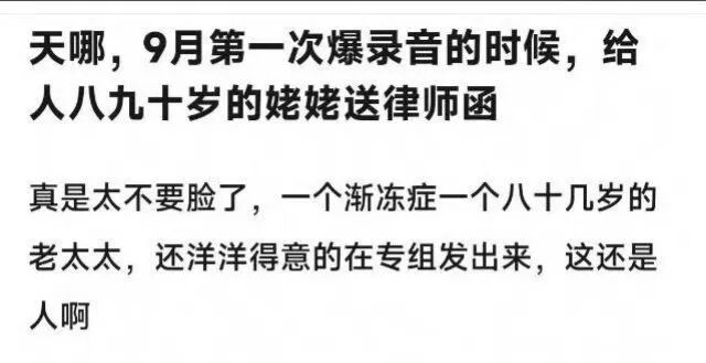 据说,他们曾把律师函送给了古二八十多岁的年迈的姥姥。一个渐冻症,一个年迈的老人,真够可以的。